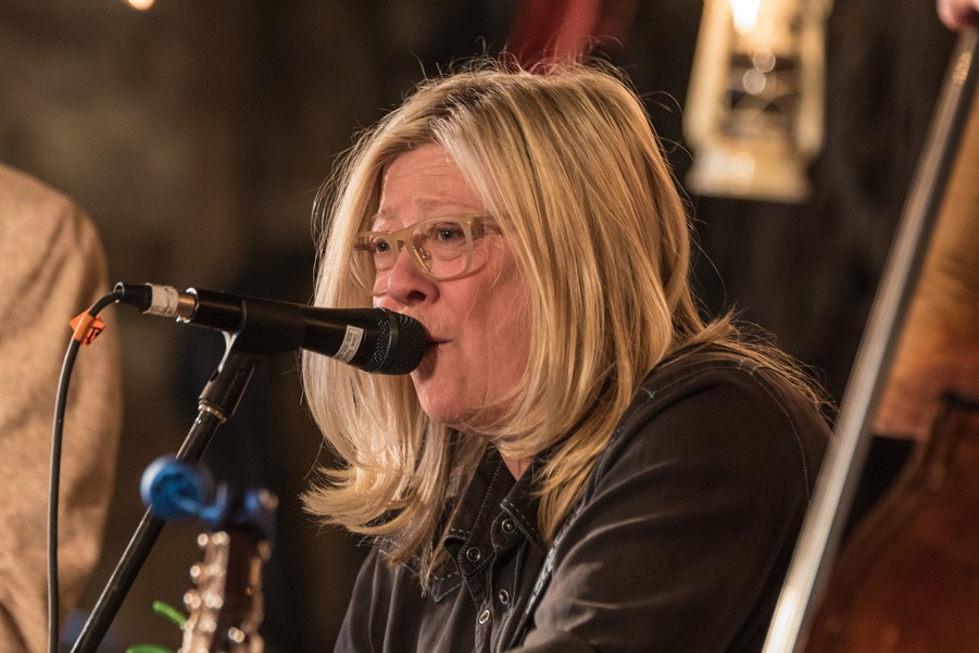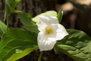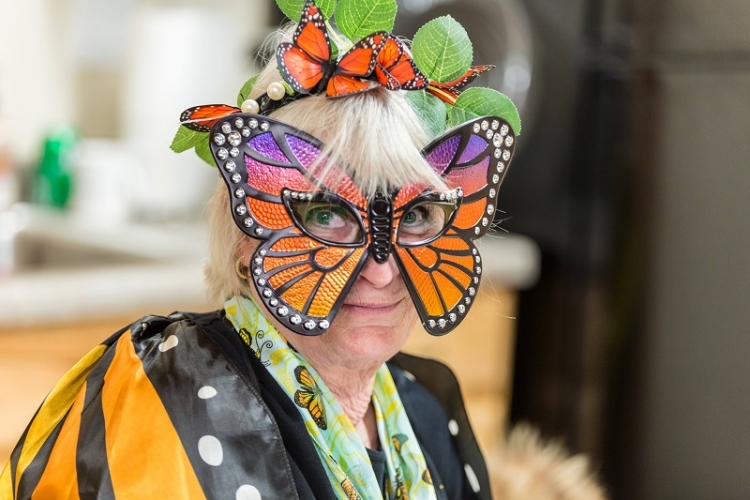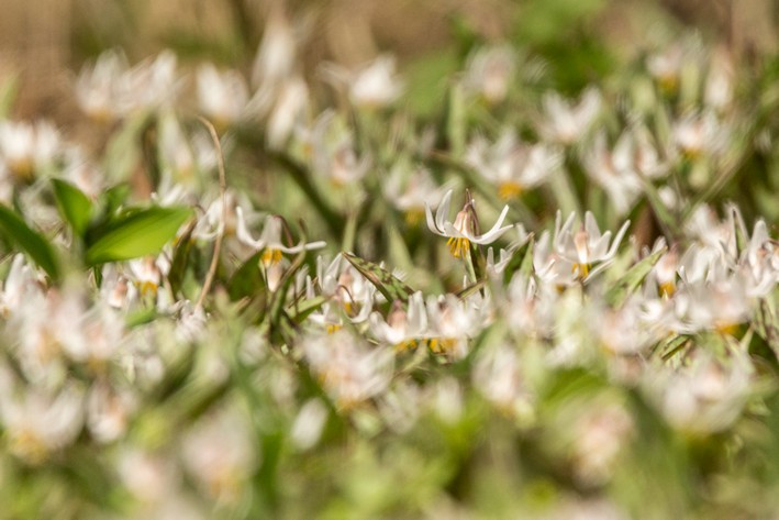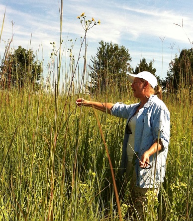 Diane Schwartz posing with shooting stars in bloom. (Photographer unknown)