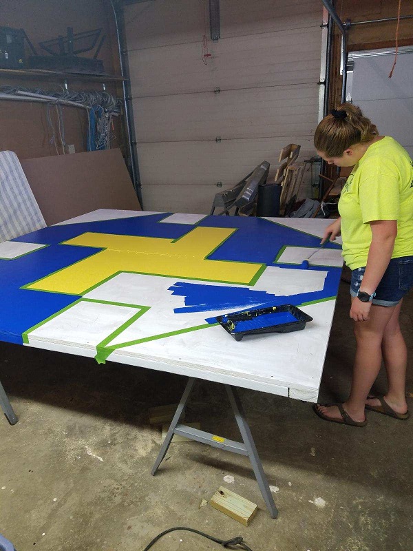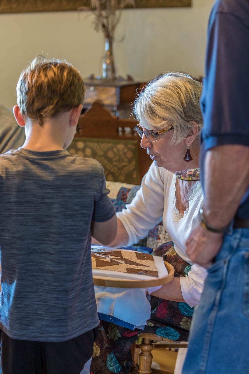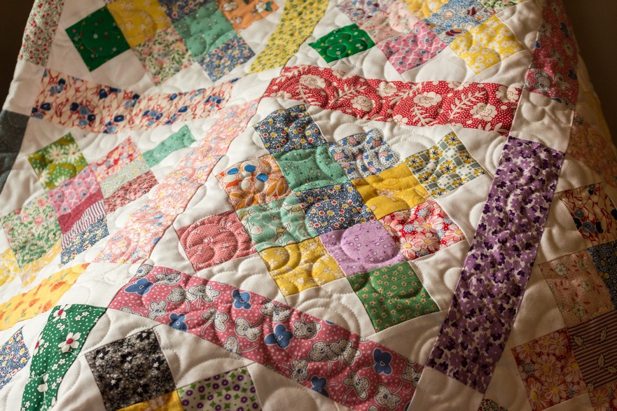 Crazy quilt bed covering, early 1900's, belonged to Marcella's family.