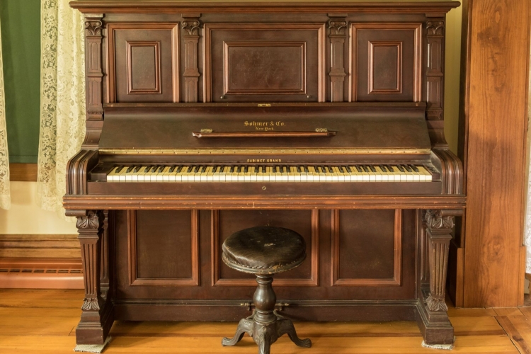 Sohmer Cabinet Grand Upright Piano, 1894. Purchased by Eveline Schumacher  for her daughter, Marcella in 1920. Photo by Rona Neri.